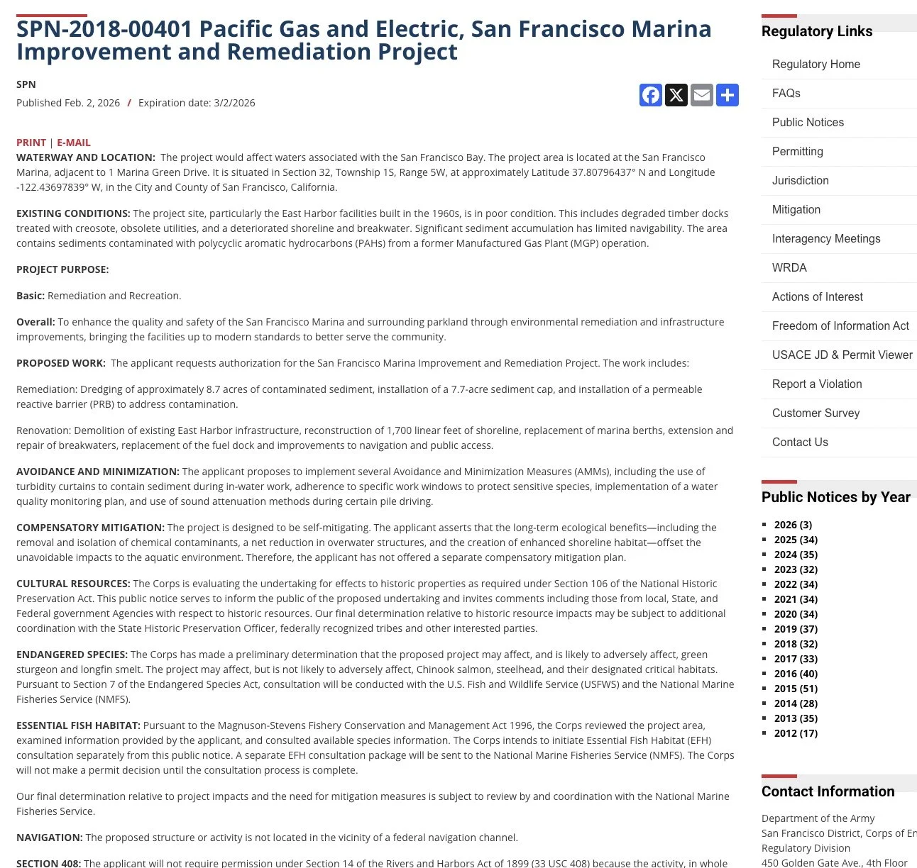 “The California Water Board has confirmed that dredging is not required and that the fuel dock does not need to be removed for PG&E’s cleanup,” said Steve Welch, chair of the Golden Gate Area Council Sea Scout Committee. “The marina has functioned safely at its current depth for decades.”